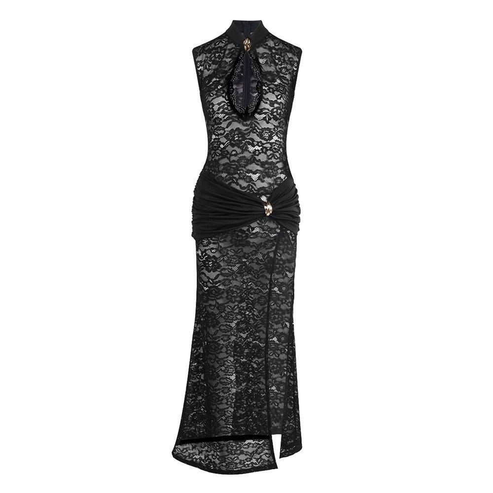 Tilly Siyah Dantel Yırtmaçlı Maxi Elbise