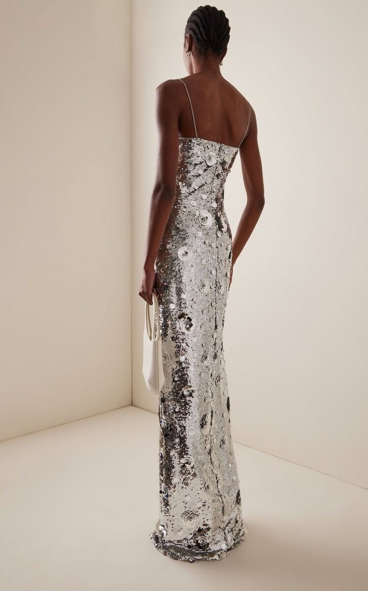 Denisse Gümüş Payetli Askılı Maksi Elbise