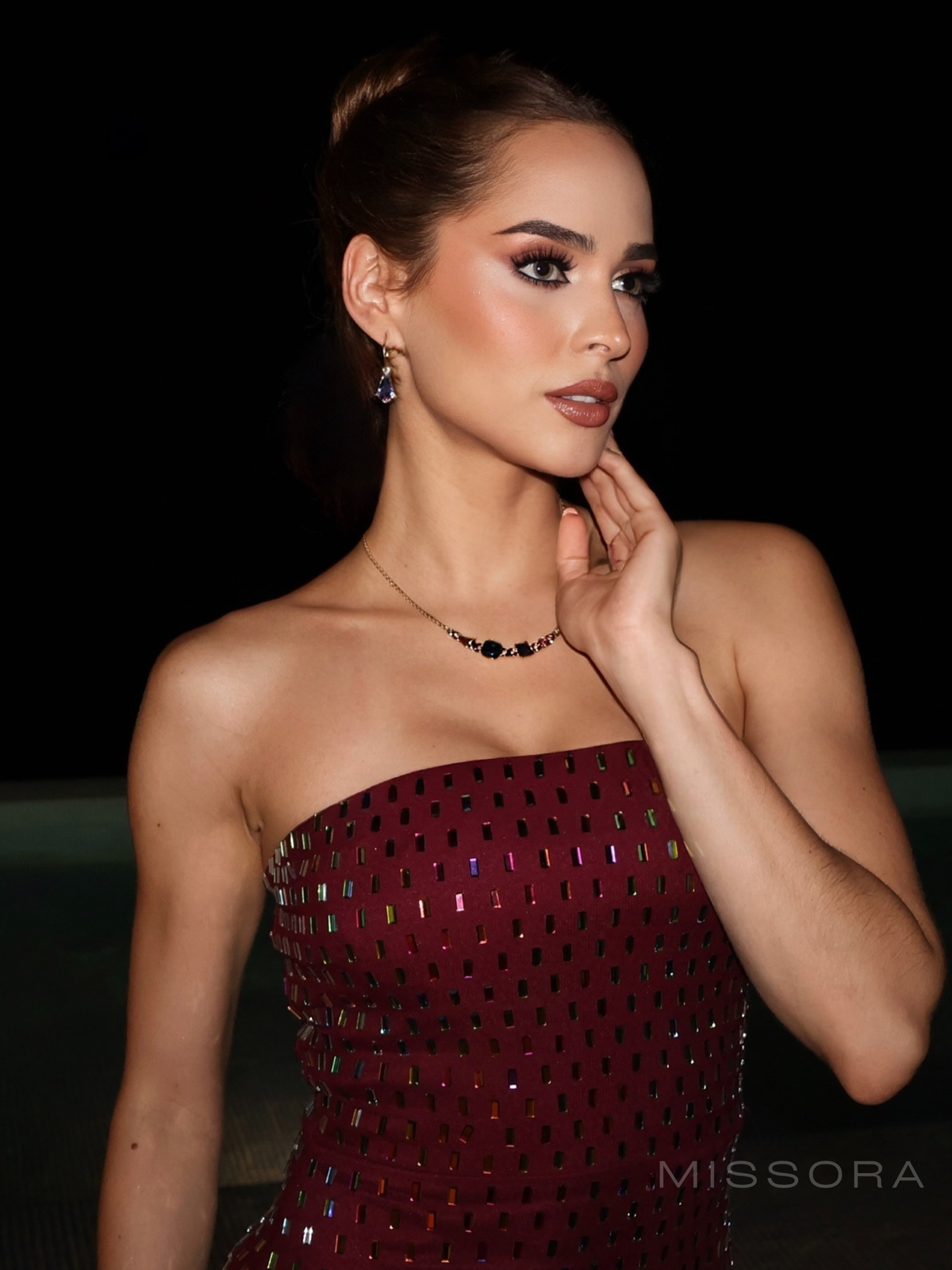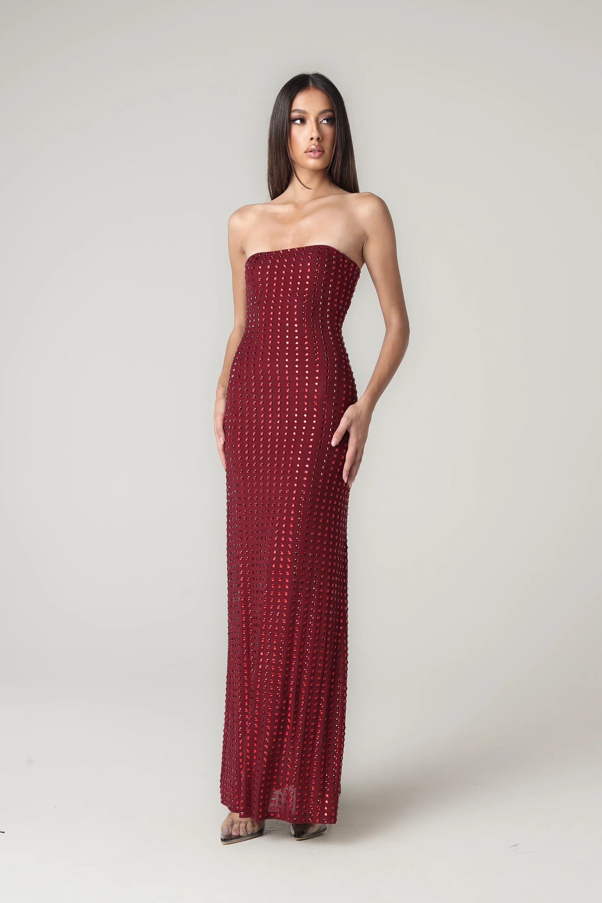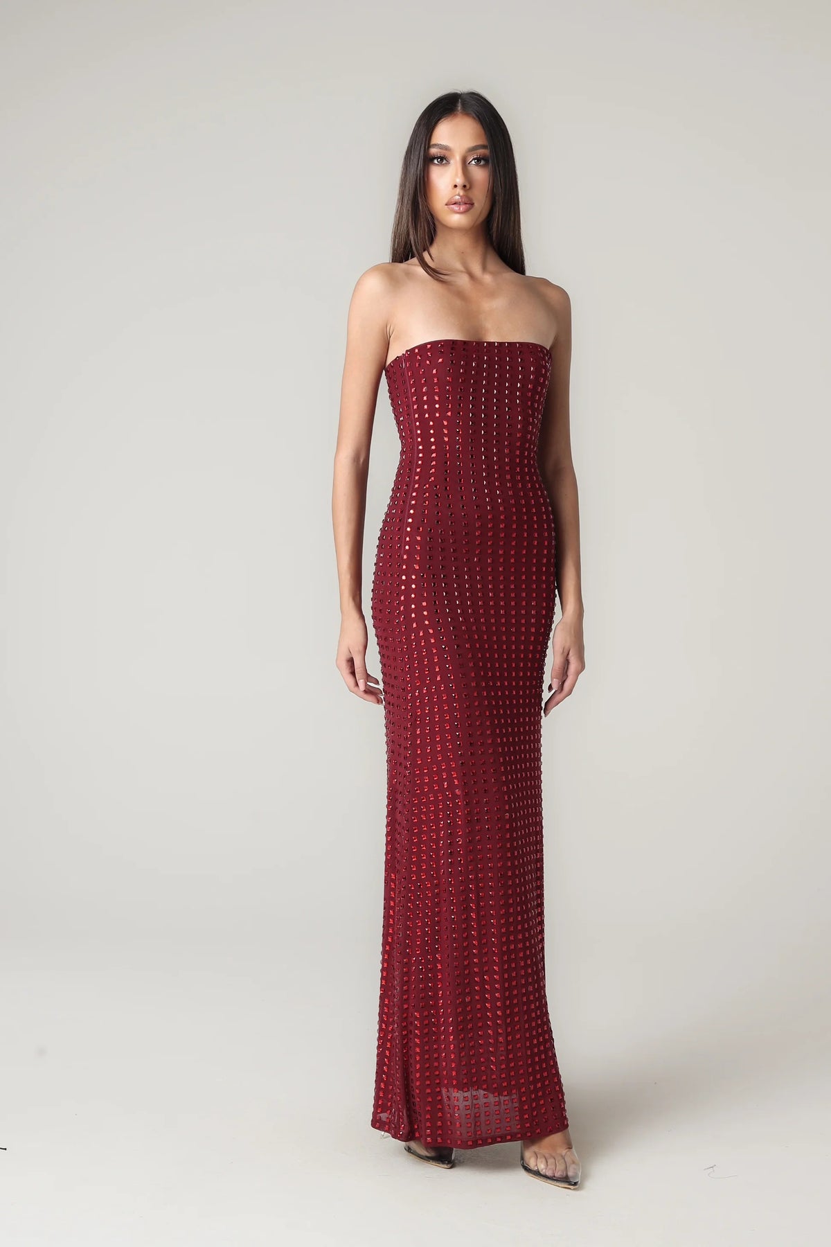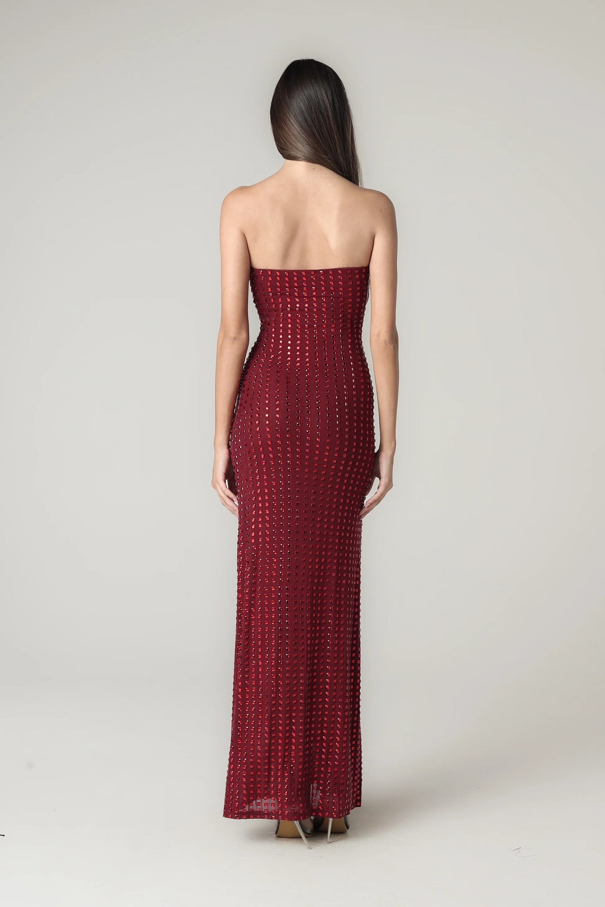 Maddy Kristal İşlemeli Straplez Maksi Elbise