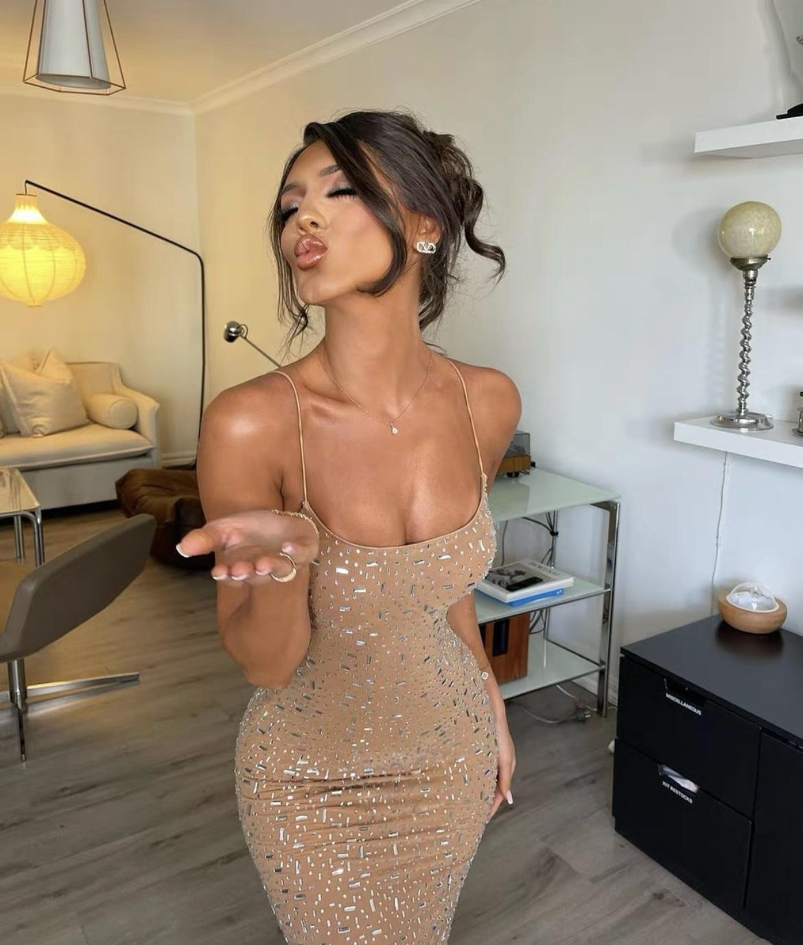 Nil Payetli Sırt Dekolteli Midi Elbise