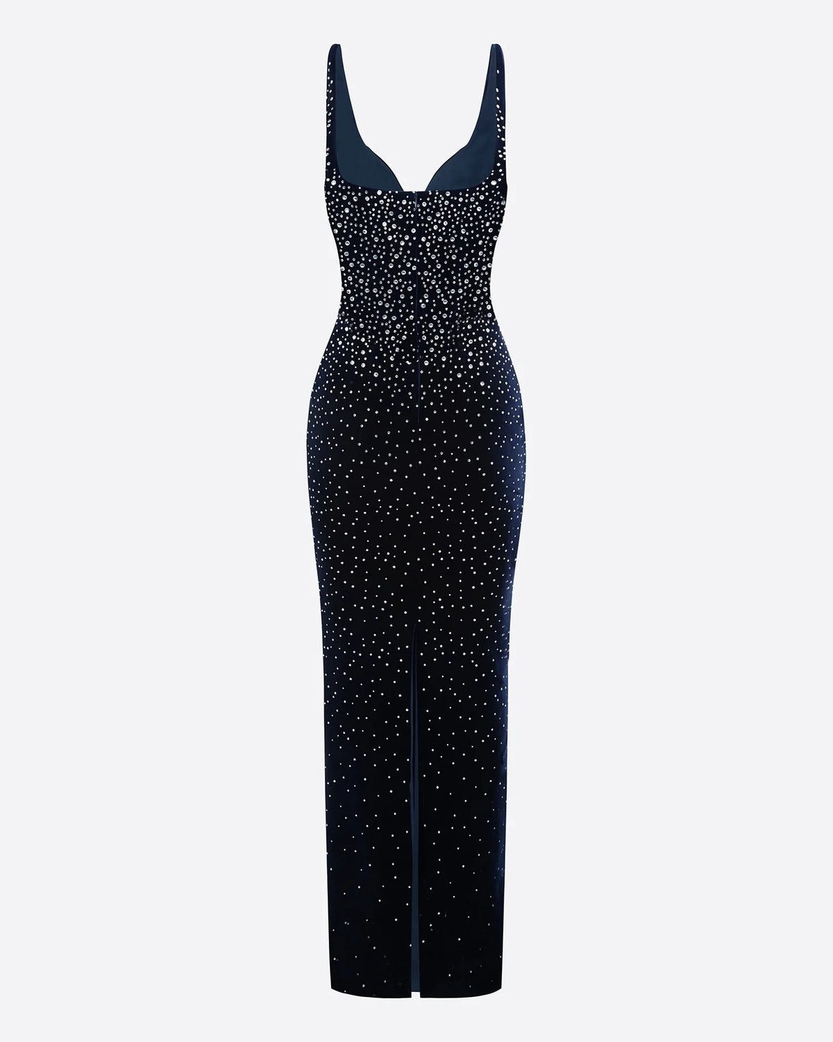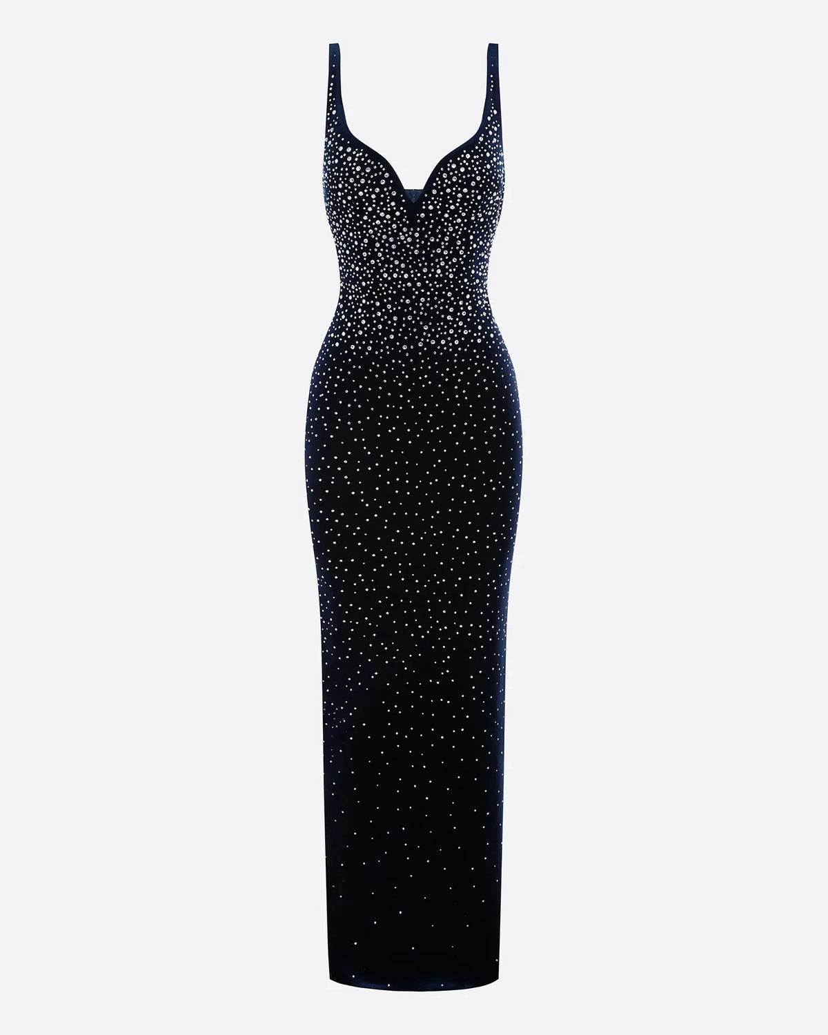 Alena Taş İşlemeli Kalp Yaka Maksi Elbise
