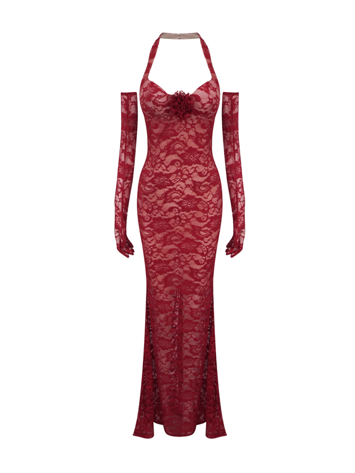 Jaslynn Düşük Omuz Dantel Maksi Elbise