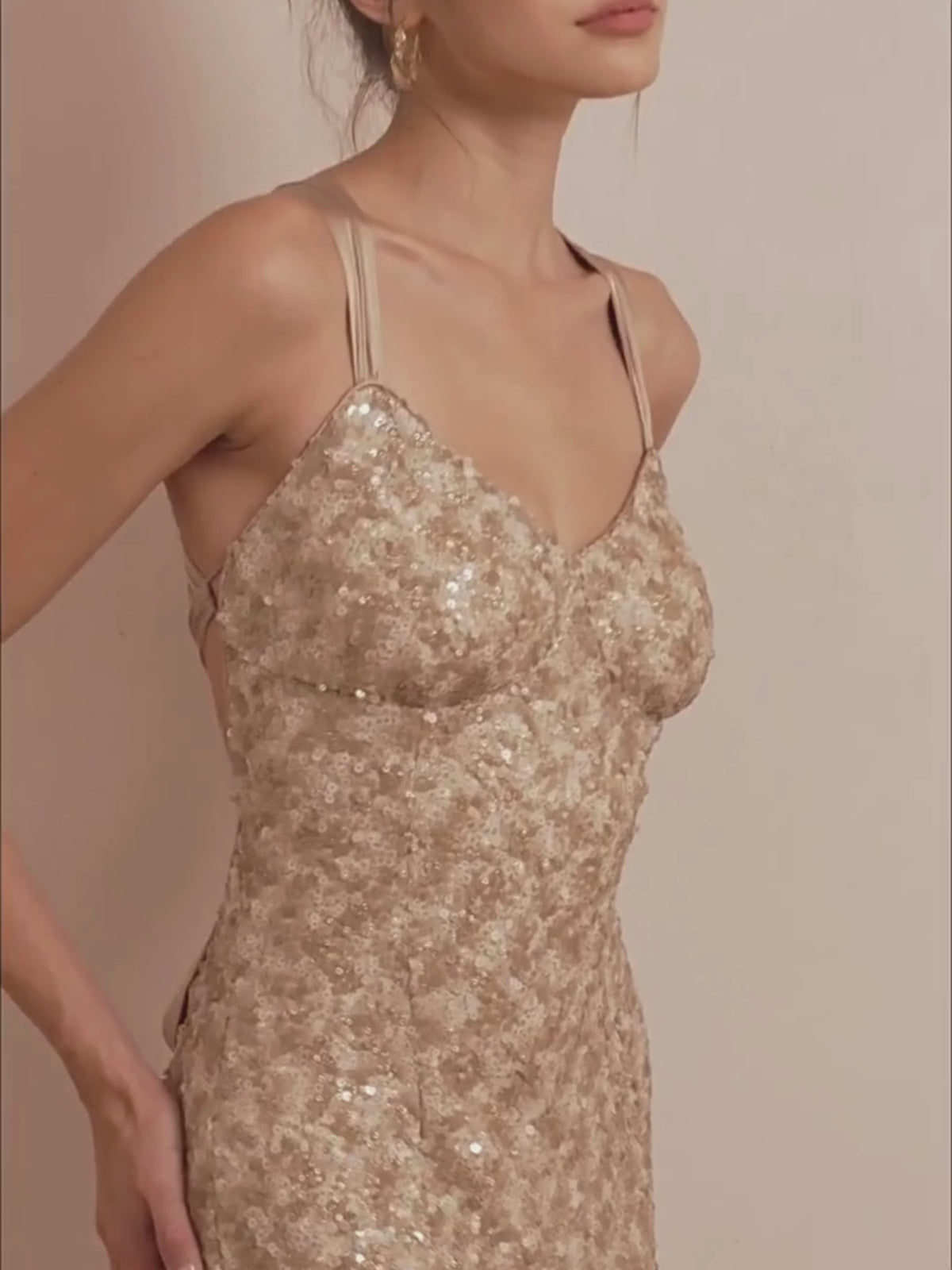 Finn Sırt Dekolteli Payetli Maksi Elbise