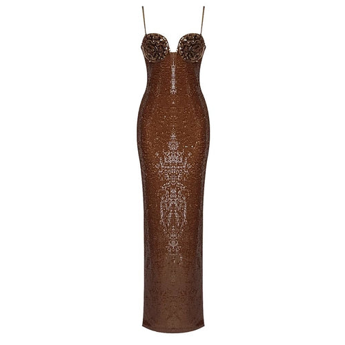 Joselynn Payetli Tek Omuz Maksi Elbise -