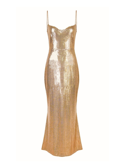 Nil Payetli Sırt Dekolteli Midi Elbise