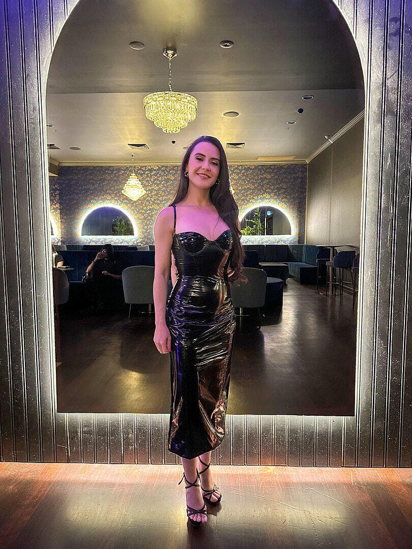 An iconic piece from Missora, the Amalie Glossy Bodycon Midi Dress is designed to turn heads wherever you go. Its high-shine vinyl texture and stunning, near-cherry finish color project a confident and powerful presence. Featuring a sculpted, body-hugging silhouette and underwired cup details, it provides both exceptional support and a supremely feminine allure. Prepare to feel confident, daring, and at your peak in this exquisite dress.