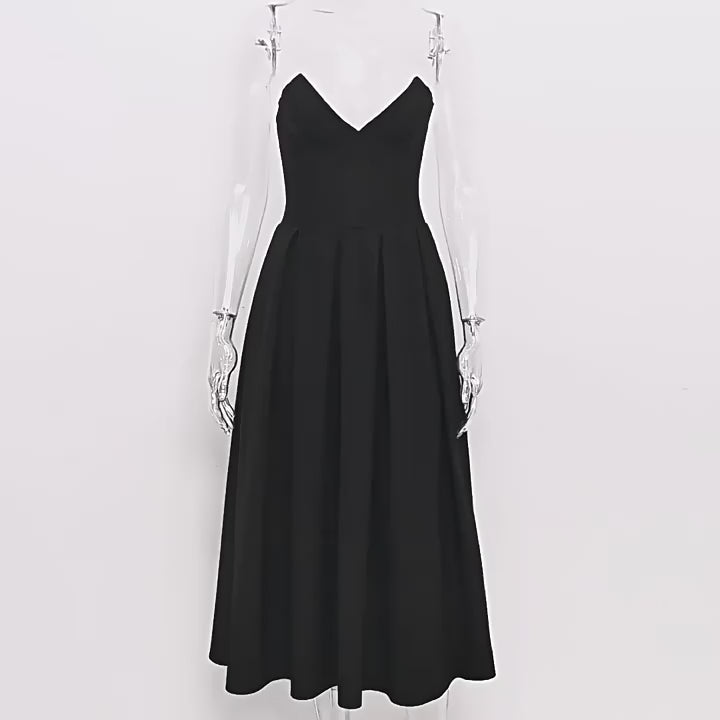 Cosette Askısız Korseli Maksi Elbise ile zarafeti ve cesareti bir arada yaşayın. V yaka kesimi ve balen detaylarıyla dikkat çeken bu elbise, sırt dekoltesiyle iddialı bir duruş sergiliyor. Canlı renk seçenekleriyle her ortamda bakışları üzerinize çekerken, büzgülü maksi etek boyuyla her adımda büyüleyici bir silüet yaratıyor.